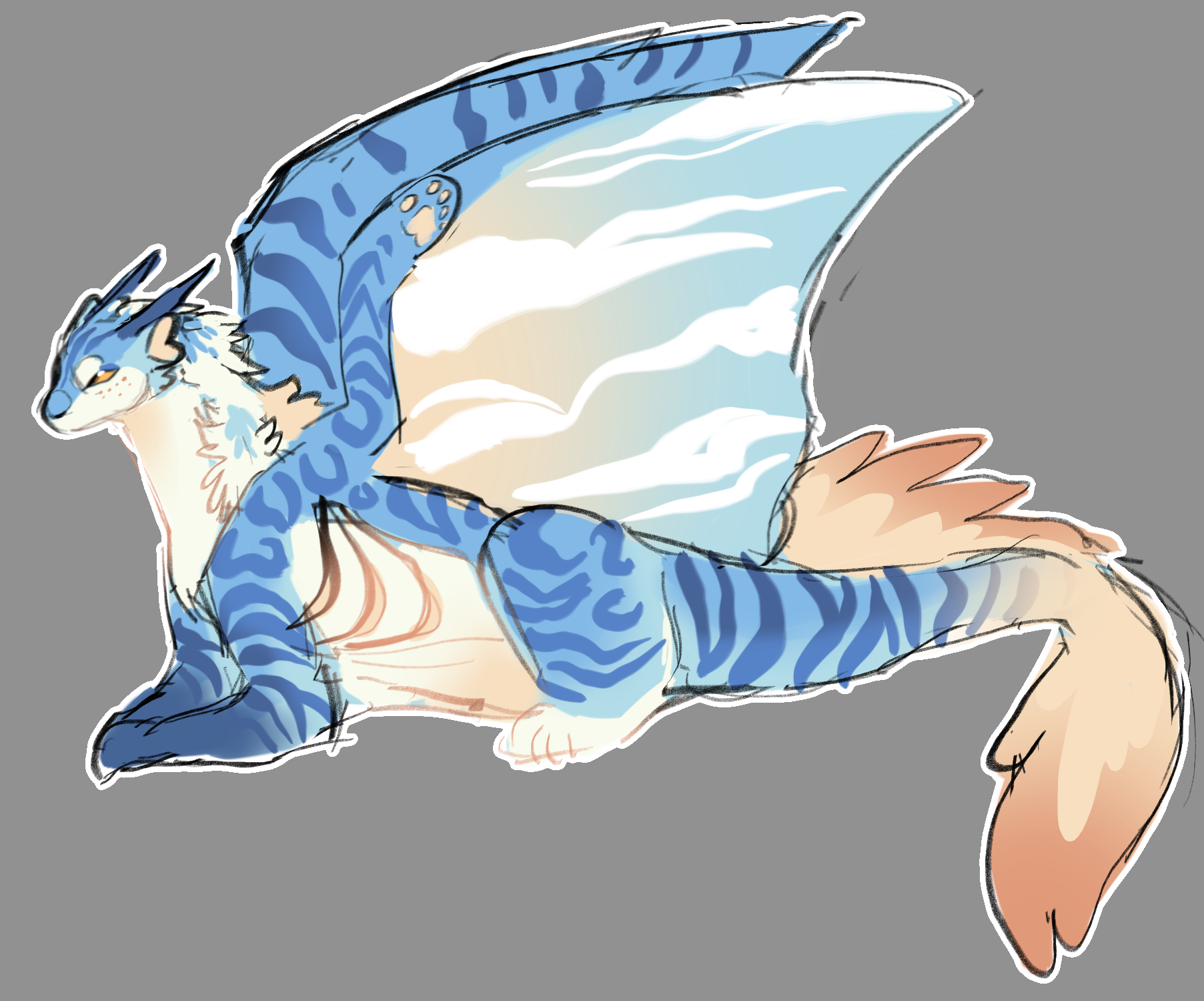 I'd been trying to hammer out a design for my large dragon form for years at this point, this drawing was a real breakthrough for me / the first that really felt right.